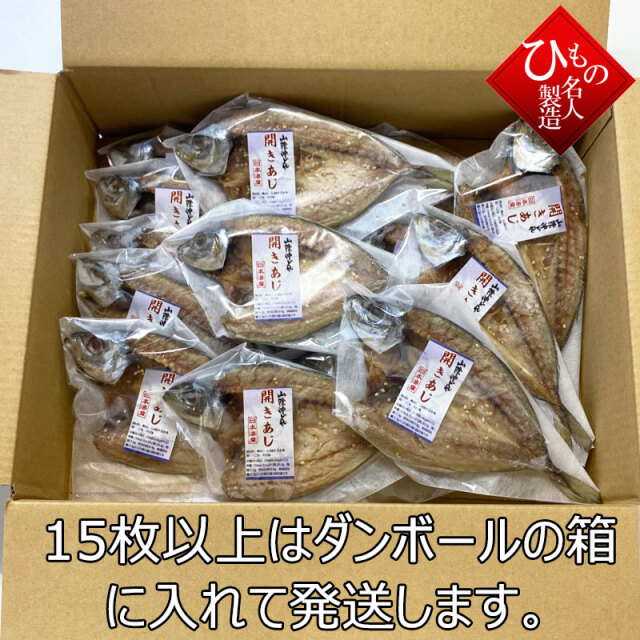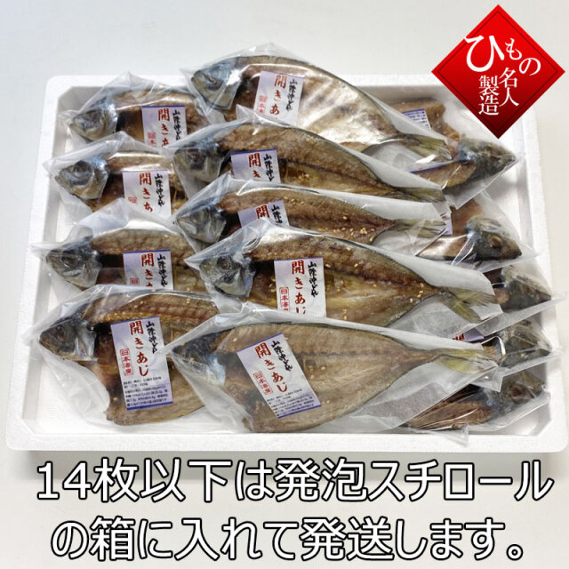 | 詰め合わせ内容 | ■開きアジ(※だいたい1枚 60g~100gです 約18cm) ■美味しい焼き方のしおり(カラー・A4サイズ) |