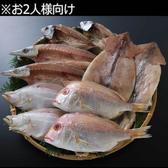 内容量 ■エテガレイx2尾 ■開きアジx2尾 ■連子鯛 x2尾 ■するめいかx2枚 ■かますx2枚 |